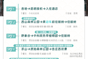 品質(zhì)住宿3晚攜程4鉆酒店+1晚告莊特色酒店(旺季節(jié)假日除外)+1晚昆明市中心商圈內(nèi)酒店(旺季和節(jié)假日不保證住告莊酒店,會調(diào)整至相應(yīng)同級四鉆酒店入住。)